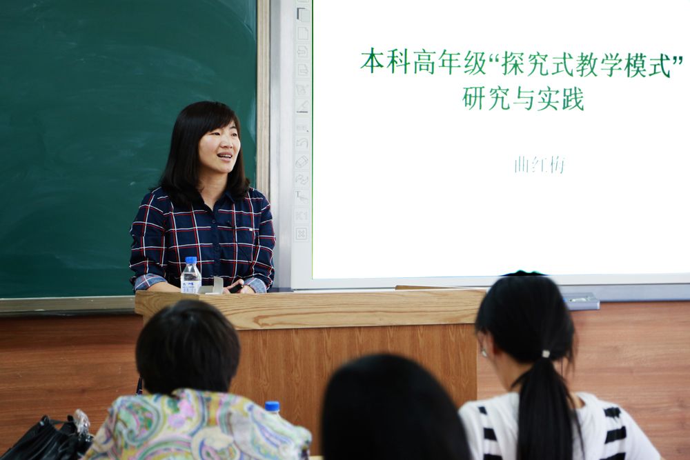 曲教授首先介绍了探究式教学模式的相关概念,如讨论班教学的几种形式、导论课与研讨课的差异、讨论班与科研的关系等等。她认为探究式教学模式能够更大限度激发员工表达自己的观点,并通过平等的合作关系开展学习,这种方式有利于培养员工的思想能力和学术素养,形成突破性的观点和成果。其次,她为大家介绍了探究式教学的前期准备和前提条件,合适的课程内容、适当的教材或者为员工量身定做的教材和阅读材料、教师的充分准备等都是必不可少的因素。最后,她与大家分享了探究式教学中需要注意的问题,如需制定讨论班相关规则并严格执行、教师在研讨过程中需发挥引导作用、采用多样化的评价方式和其它辅助性手段等。曲教授说尽管改变员工原有的学习方式非常困难、克服学习惰性和提高员工英语表达能力也不是易事,但七年的探索和实践让她和员工都受益匪浅。
