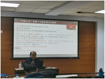 2022年11月3日晚,党课正式开始前,支部书记赵雄峰老师首先为大家介绍了芦恒教授,对芦恒教授受邀来支部讲党课表示热烈的欢迎和由衷的感谢,并向参会党员同志表明深入学习和领会二十大精神的重要性。之后,芦恒教授以“‘社会韧性’视域下中国式现代化与高质量发展”为主题进行了党课讲授。芦恒教授以二十大报告中关于“中国式现代化的五个特色”作为切入点,指出现代化与风险问题紧密相关,中国式现代化实际上是克服和抵御多元风险危机的过程。风险与机遇并存,多难才能兴邦。芦恒教授指出“多难兴邦”的本质原因在于中国社会的“韧性”和中国特色社会主义制度的“韧性”。随后,通过对“韧性”进行学理上的研究,并以“鞍钢宪法”、地方政府治理模式等为例,指出中国共产党的执政韧性体现在党的卓越学习能力、改革创新能力与自我革命能力。最后,芦恒教授以长春市某一“回迁与商品房混居型”社区为例,指出党群关系的良性互动是中国共产党执政韧性生成的社会基础。在应对重大风险危机中,广大人民群众只有在中国共产党的领导下,才能够凝聚起强大的社会支撑性力量。
