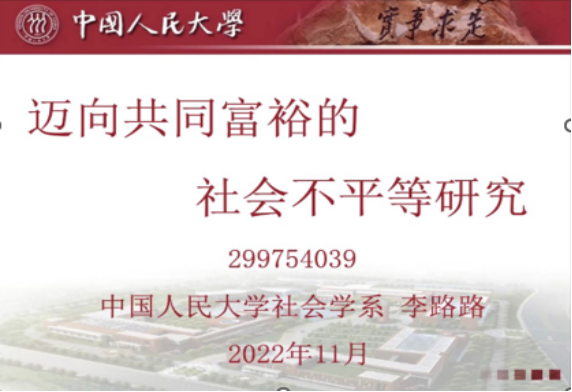 2022年11月9日19时,“BETWAY必威名家系列”讲座第166场在腾讯会议线上举行。主讲人为李路路,中国人民大学“大华讲习教授”,兼任教育部社会学类专业教学指导委员会主任委员。主要研究方向为社会分层与社会流动、组织研究、社会变迁与社会现代化。讲座的题目为“迈向共同富裕的社会不平等研究”。
