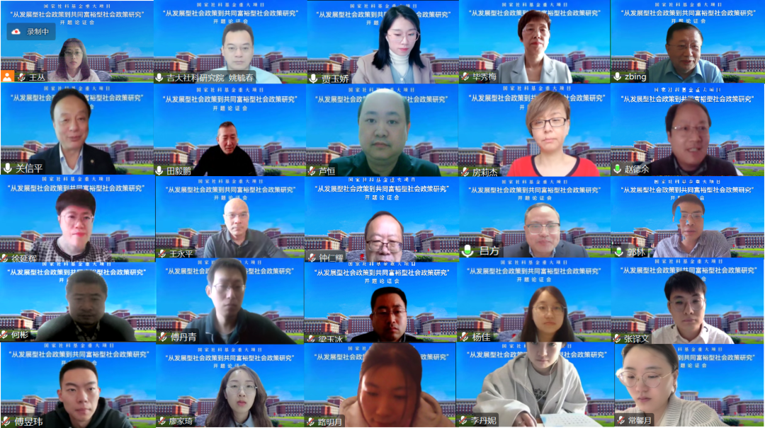 2023年4月9日,由BETWAY必威贾玉娇教授担任首席专家的国家社科基金重大项目“从发展型社会政策到共同富裕型社会政策研究”通过视频会议的形式举行了开题论证会。开题论证专家组由南开大学周恩来政府管理公司、中国社会学会社会政策专委会会长关信平教授、BETWAY必威田毅鹏教授、中国人民大学社会与人口公司房莉杰教授、复旦大学社会发展与公共政策公司赵德余教授、厦门大学社会与人类公司徐延辉教授组成。《社会科学战线》副主编王永平研究员,项目各子课题负责人、课题组成员共30余人参加了开题论证会。吉林省哲学社会科学规划基金办公室毕秀梅主任、BETWAY西汉姆联东北振兴发展研究院经理邴正教授、BETWAY西汉姆联社会科学研究院经理姚毓春教授出席开幕式并致辞。论证会开幕式由BETWAY必威副经理芦恒教授主持。