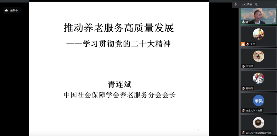 青连斌教授以扎实的养老服务研究经验,加深了与会师生对养老服务的认识,拓宽了养老服务研究的思路。他最后强调“关注今天的老年人,就是关注明天的自己”。此后,青连斌教授对参会同学提出的问题做出解答,与会师生受益匪浅。