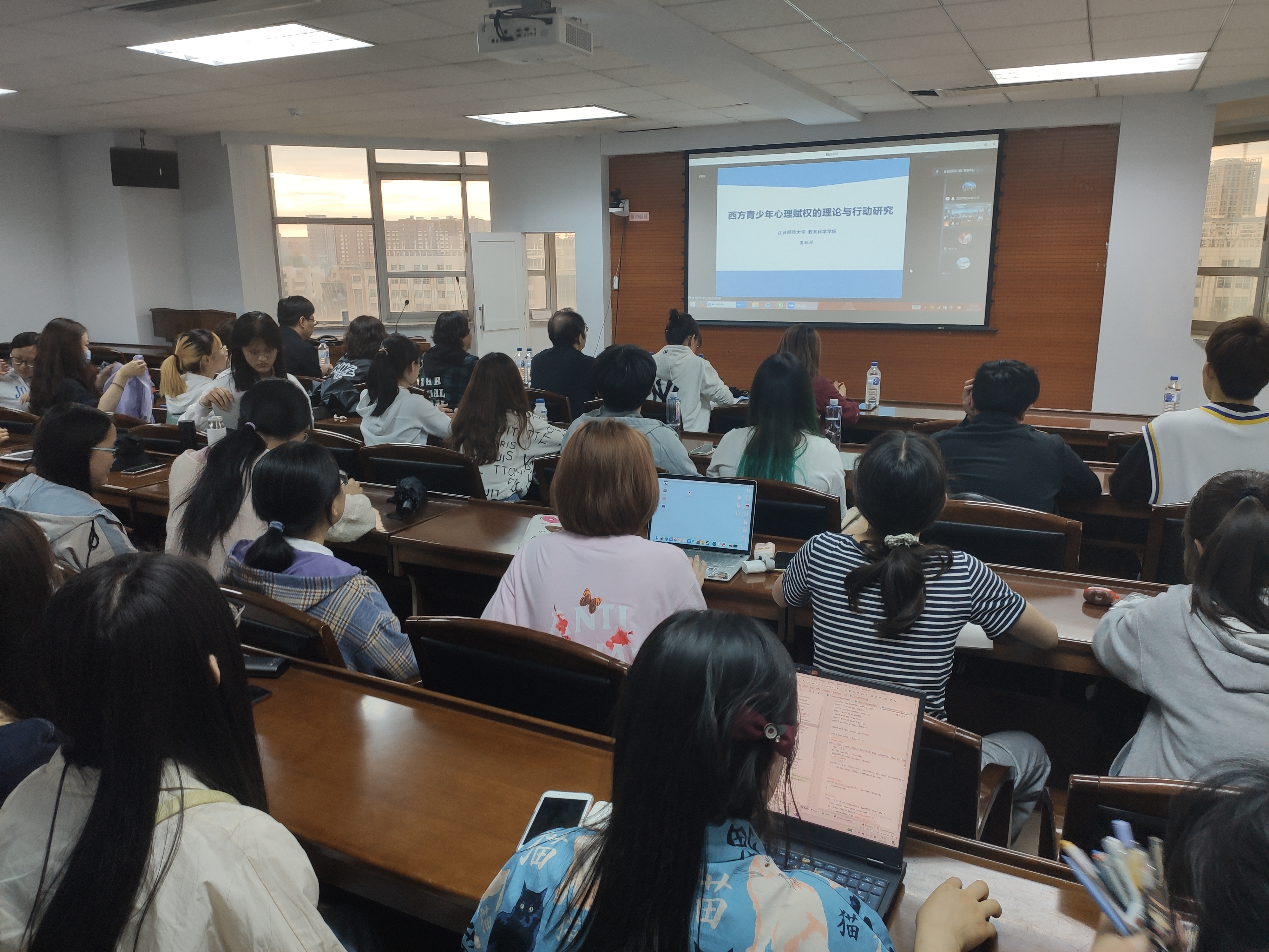6月4日晚18:30,第三期当代心理学理论前沿系列讲座如约而来。由江苏师范大学贾林祥教授、南京师范大学郭永玉教授主讲,公司黄冬梅教授主持的心理学术讲座在东荣九楼904会议室举行。
