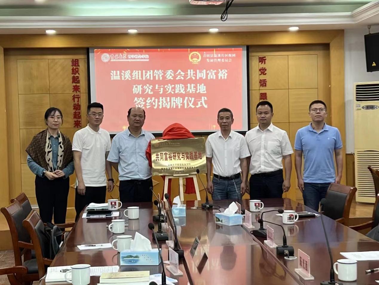 6月29日,学院与“青田县温溪片区组团发展管理委员会”(简称温溪组团管委会)共同签署合作备忘录,BETWAY必威“共同富裕研究与实践基地”正式落地温溪镇,双方将携手共同探索实现小城市发展带动周边乡村实现共同富裕发展路径。青田县委常委、温溪组团管委会主任、温溪镇党委书记童森军主持仪式。公司副经理芦恒教授、温溪组团管委会常务副主任陈光西分别代表双方签订基地合作备忘录。公司党委副书记兼副经理刘培强、温溪组团管委会主任童森军共同为共同富裕研究与实践基地揭牌。