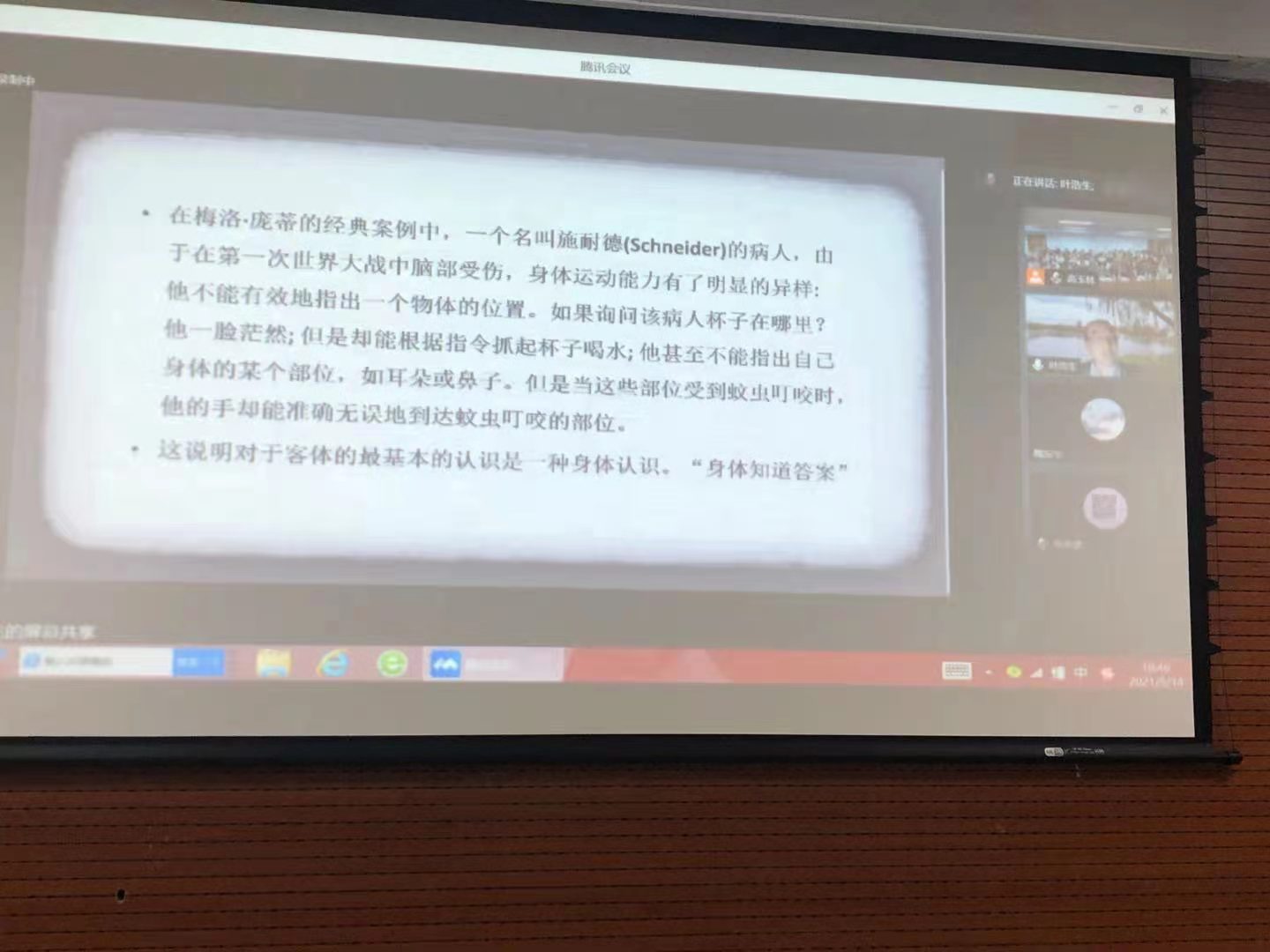 首先,叶浩生教授以“生成认知:身体动作‘创造’世界”为题,为我们带来了精彩的学术讲座。叶教授首先对“认知的功能在于脑”这一传统观念提出质疑。自古希腊以来的西方文化中,二元论思想一直占据主导地位。柏拉图是二元论思想的最早代表,笛卡尔从认识论上确证了心、物二元世界的存在。传统认知心理学承袭了身心分离的二元论传统,视心智为独立于身体感觉运动系统的抽象符号信息加工。但是具身认知的兴起对二元论提出了挑战。从具身的维度来看,认知是身体的认知,身体是认知的主体。生成认知是具身认知思潮中的一个新取向,它主张认知是通过身体活动“生成的”。知觉存在于由知觉引导的行动;认知结构出自循环的感知运动模式,它能够使得行动被知觉地引导。叶浩生不仅在理论上深入浅出为与会人员梳理了理论线索,而且还向大家展示了他的研究团队所作的最新实证研究进展。