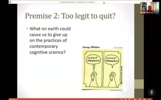 第五部分讲授了The fault lines of the debate。这部分Duncan主要讨论了二元论者与许多物理主义者在方法论上的一个重要分歧。一般来说,支持二元论的论点需要诉诸于我们的内省,而支持物理主义的论点常常是第三人称的、实证的主张。二元论者承认内省和实证方法的合法性,但一些物理主义者则质疑诉诸内省的合法性。知识论者Alvin Goldman在他的著作《Science, Publicity, and Consciousness》中提出了诉诸内省是否合法的问题,而且论证了它的合法性。Duncan在此对Goldman的论证进行了清晰、有益的概述与分析。Duncan在讲座的最后引入了一个许多员工特别要求他讨论的话题:关于(视觉)经验的形而上学争论,Duncan介绍并简要评价了朴素实在论、感觉材料理论、内在心智状态观及表征论对这个问题的不同观点。讲座在热烈的讨论中结束。