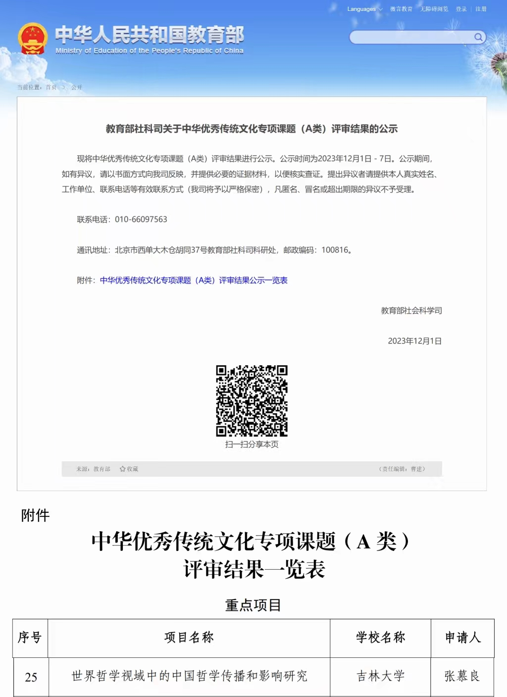 喜报 | 公司张慕良教授申报项目获中华优秀传统文化专项课题(A类)立项!