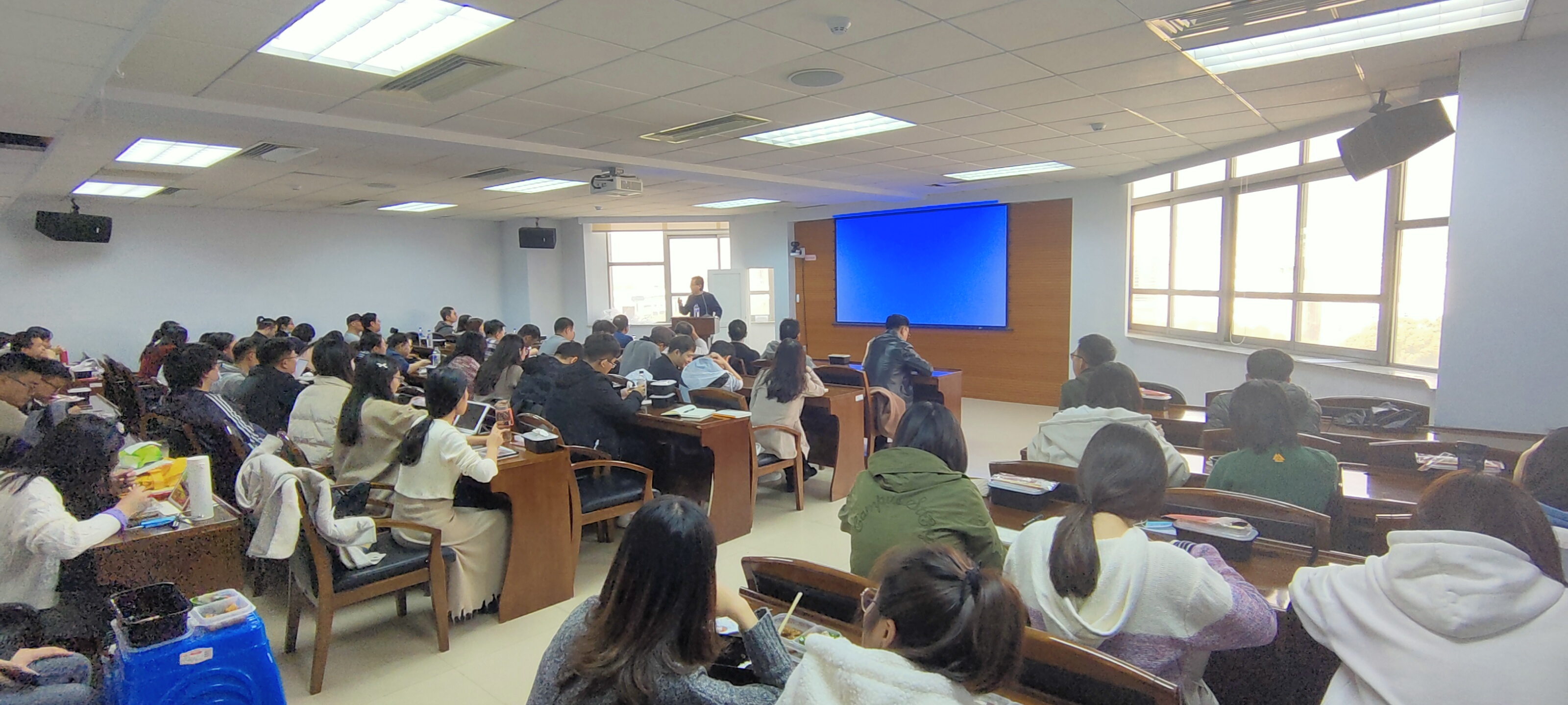 在晋老师演讲完毕,回答了师生提出的相关问题。“学术月坛”午间学术交流活动最后在轻松愉快的氛围中结束。与会的研究生表示收益良多,感谢公司支持举办此类的活动,并期待下一次“学术月坛”活动。(王谦报导)