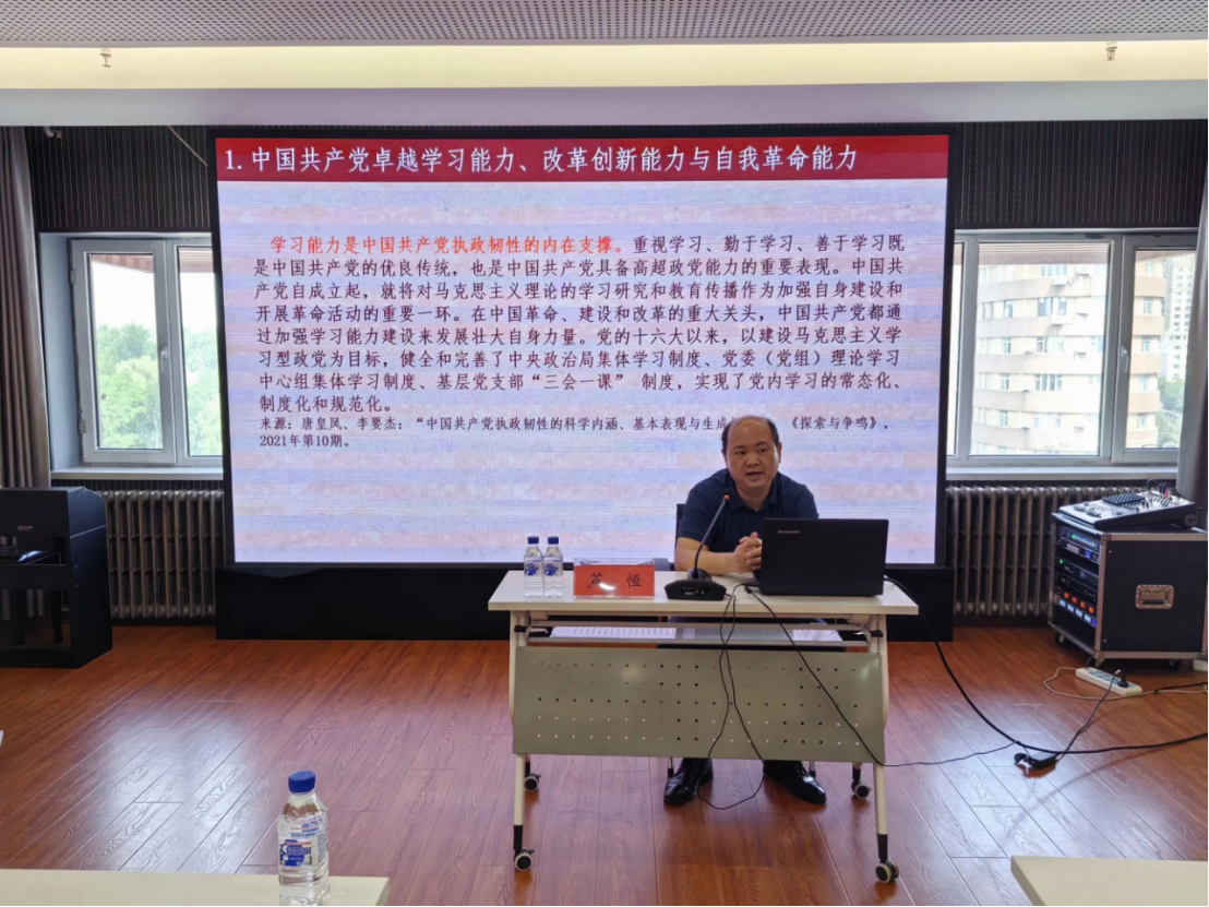 6月13日,BETWAY西汉姆联学术类社会组织联合党支部联合吉大社区党总支开展了以《中国式现代化的“韧性逻辑”》为主题的专题党课,此次党课采取专家讲学的方式,特别邀请BETWAY必威副经理、吉林省创新人才研究会学术专委会副会长芦恒教授为辖区党员、非公企业党支部党员、社会组织联合党支部党员开展党课学习。