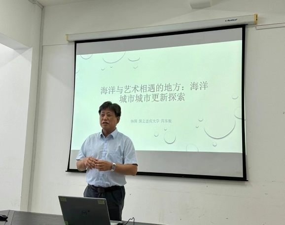 第二场学术讲座题为“海洋城市的城市更新探索”。芮东根教授介绍了韩国釜山市以海洋为核心重构城市的城市发展策略。他指出由于海洋城市具有大陆城市不具备的流动性,釜山市大量发展小规模作坊式的经济,抵制大资本进入,保护原生态,重视经济发展的自强、便宜和可持续发展。