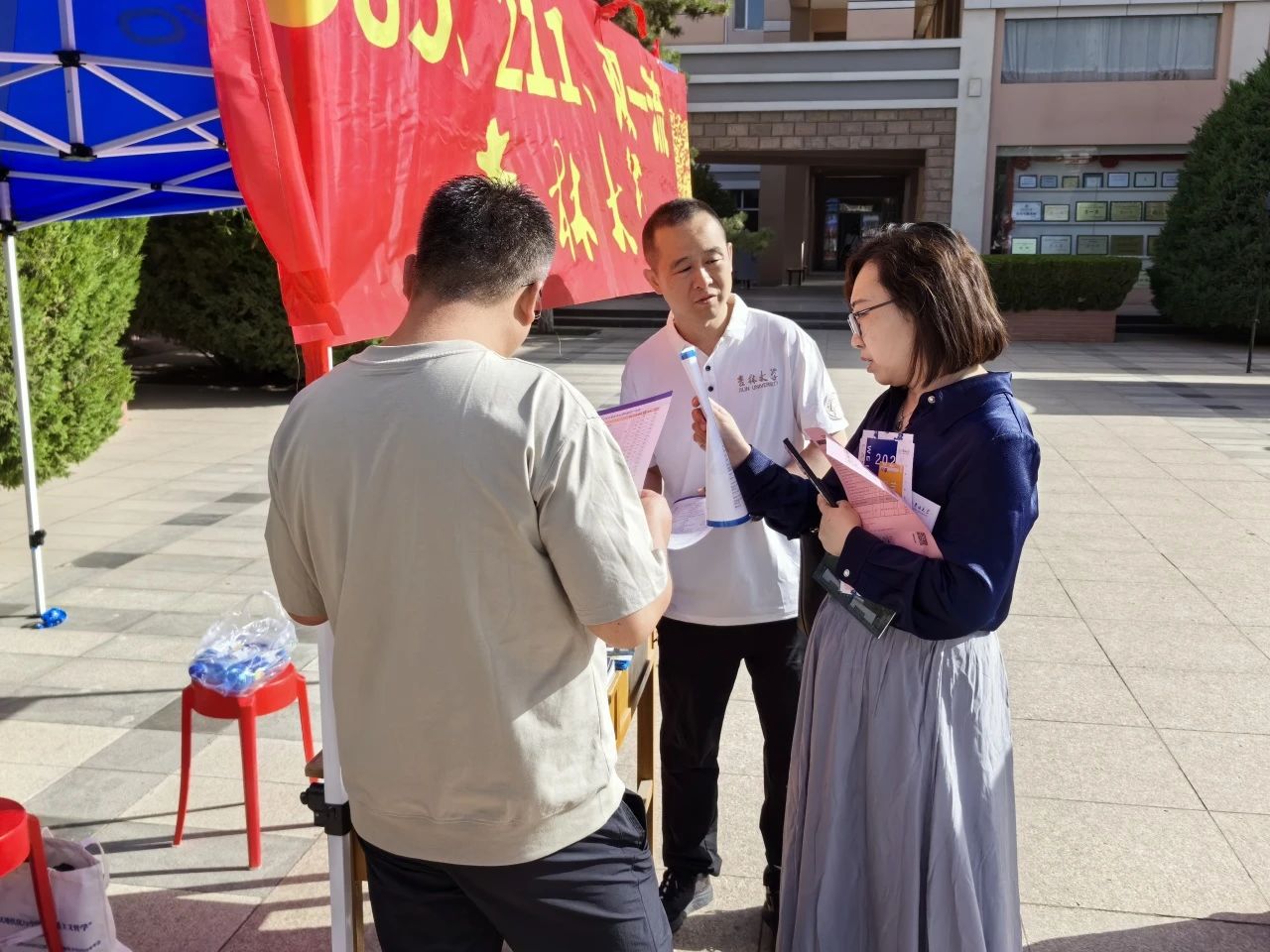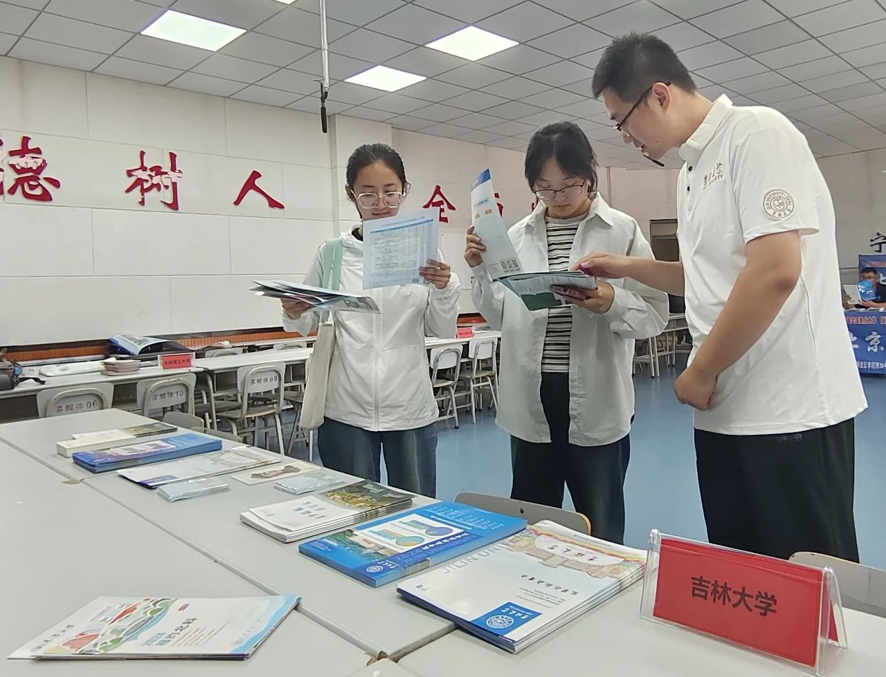 公司老师们精心筹划,在同各高中协调沟通场地后积极开展部署,将相关宣传资料和政策文件提前携带至工作场地,静候员工和家长前来。