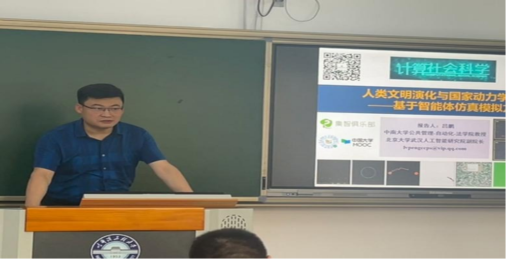 中南大学社会计算研究中心主任、公共管理公司/自动化公司/法公司吕鹏教授作了《人类文明演化与历史动力学ABM模拟》的报告。他通过智能体仿真模拟方法探究了人类群体行为宏观涌现规律与微观行为机理,揭示了人类文明演化和国家发展的动力机制,对于讲好中国故事,提升历史自信、文化自信具有重要意义。