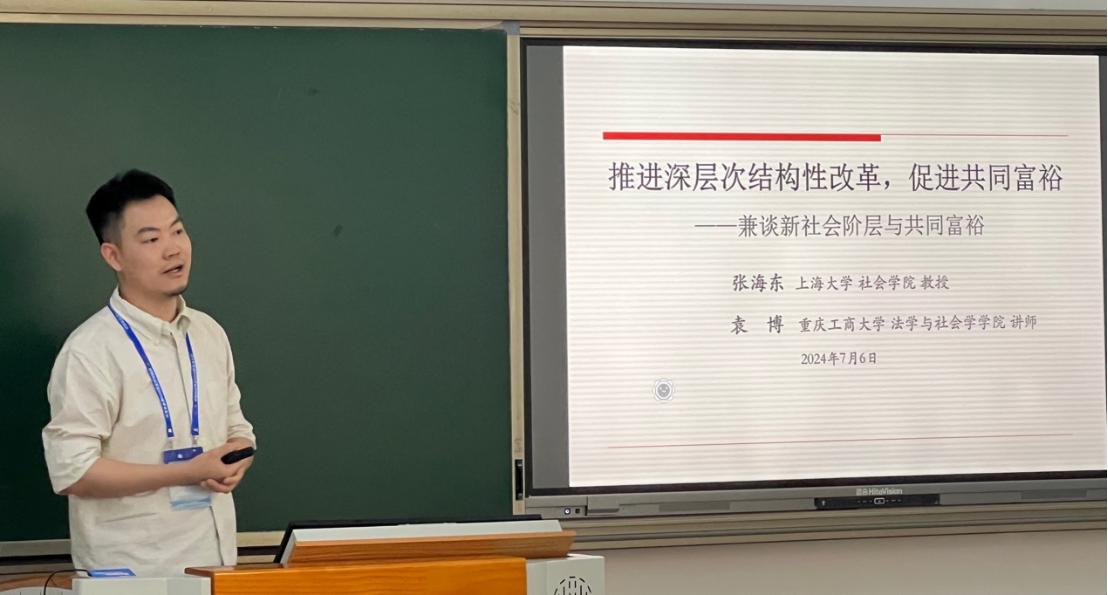 上海大学社会公司张海东教授、重庆工商大学社会学系讲师袁博作了题为《推进深层次结构性改革,促进共同富裕——兼谈新社会阶层与共同富裕》的报告。他们认为要实现共同富裕的远景目标,就必须在经济结构改革的基础上,同时推进社会层面的深层次结构性改革,破除结构性不平等因素,实现基本公共服务均等化,以增进人民福祉为首要目标。就新社会阶层而言,尽量消除各类社会结构壁垒,促进社会流动,提升与完善社会保障制度也是一个紧迫而且事关全局的大问题。