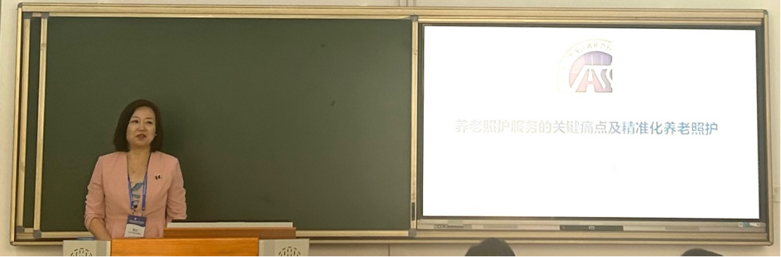黑龙江省社会科公司副经理、社会学研究所黄红研究员作了题为《养老照护服务的关键痛点及精准化养老照护》的报告。她指出当下养老服务存在着资源利用率不高、照护人才短缺、老年长期照护服务模式发展不够、对老年人失智失能的预防重视不足等关键痛点,并提出从“精准识别—精准整合—精准供给—精准支持—精准管理”等方面为老年群体提供供需匹配的照护产品和服务。