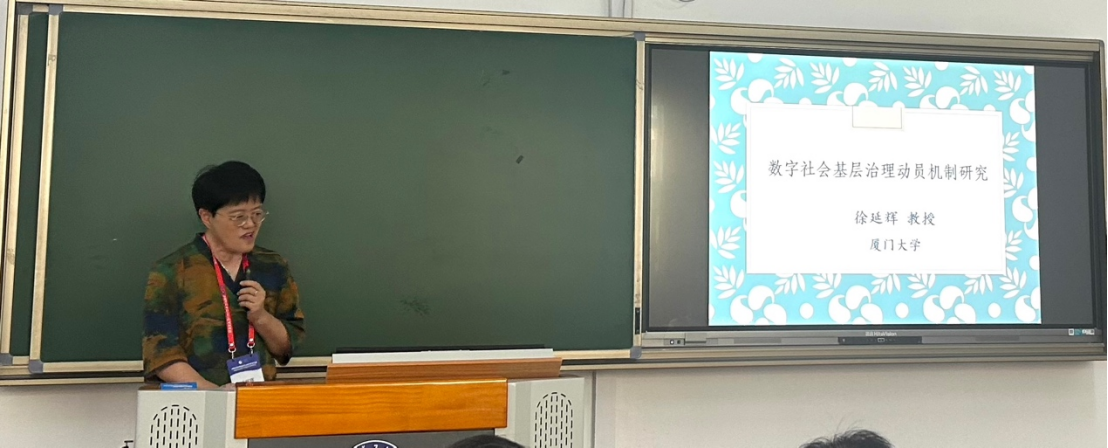 论坛第二单元共有六位发言人。厦门大学社会与人类学公司副经理徐延辉教授作了题为《数字社会基层治理的动员机制研究》的报告。她结合中国基层政府的制度情景和数字平台建设的实践场景,将TOE框架由三要素拓展为TOEI(技术—组织—环境—身份认同)四要素,认为基层社会治理活动存在技术动员、组织动员、制度环境动员和地域身份认同动员四种机制。
