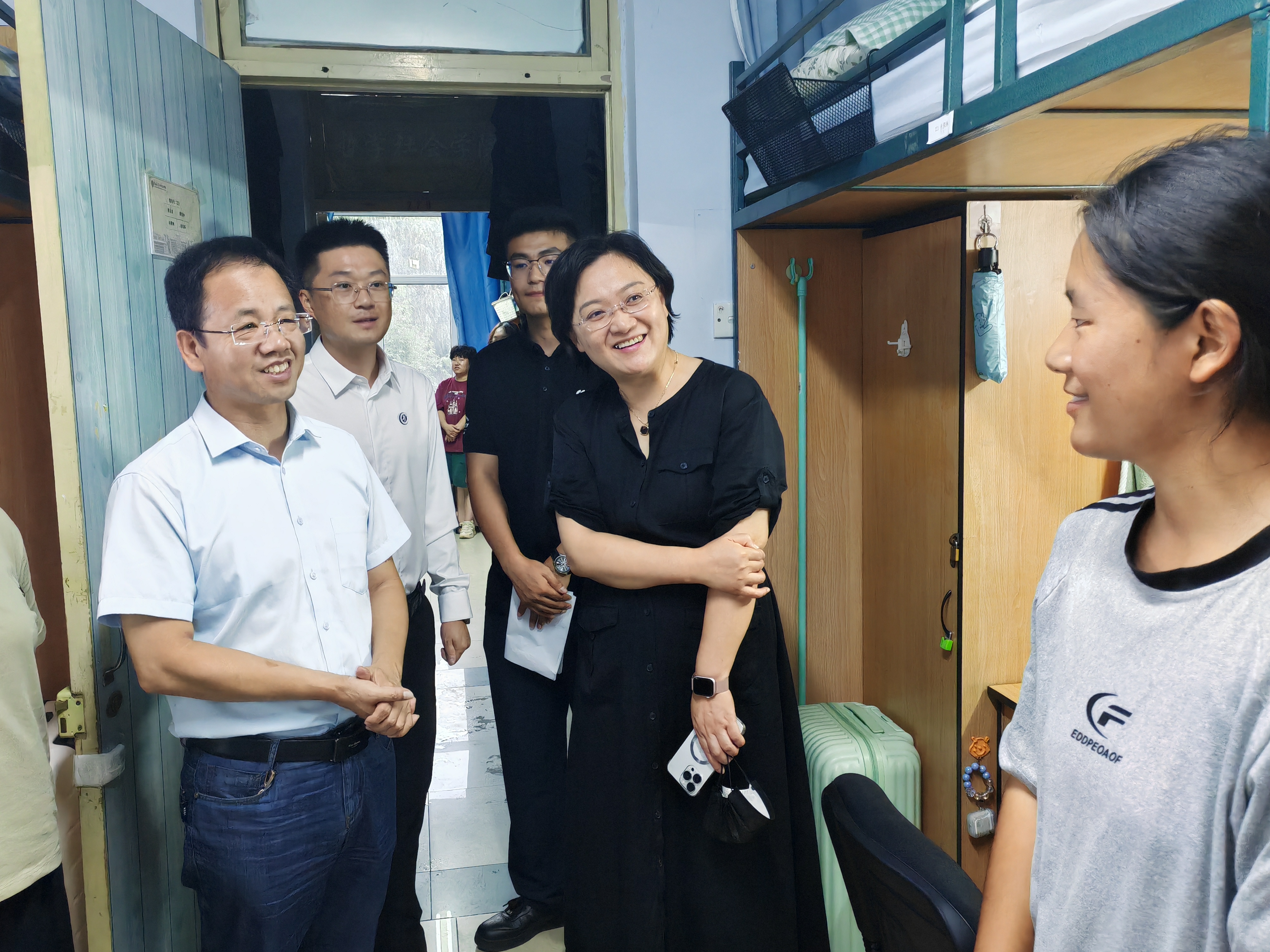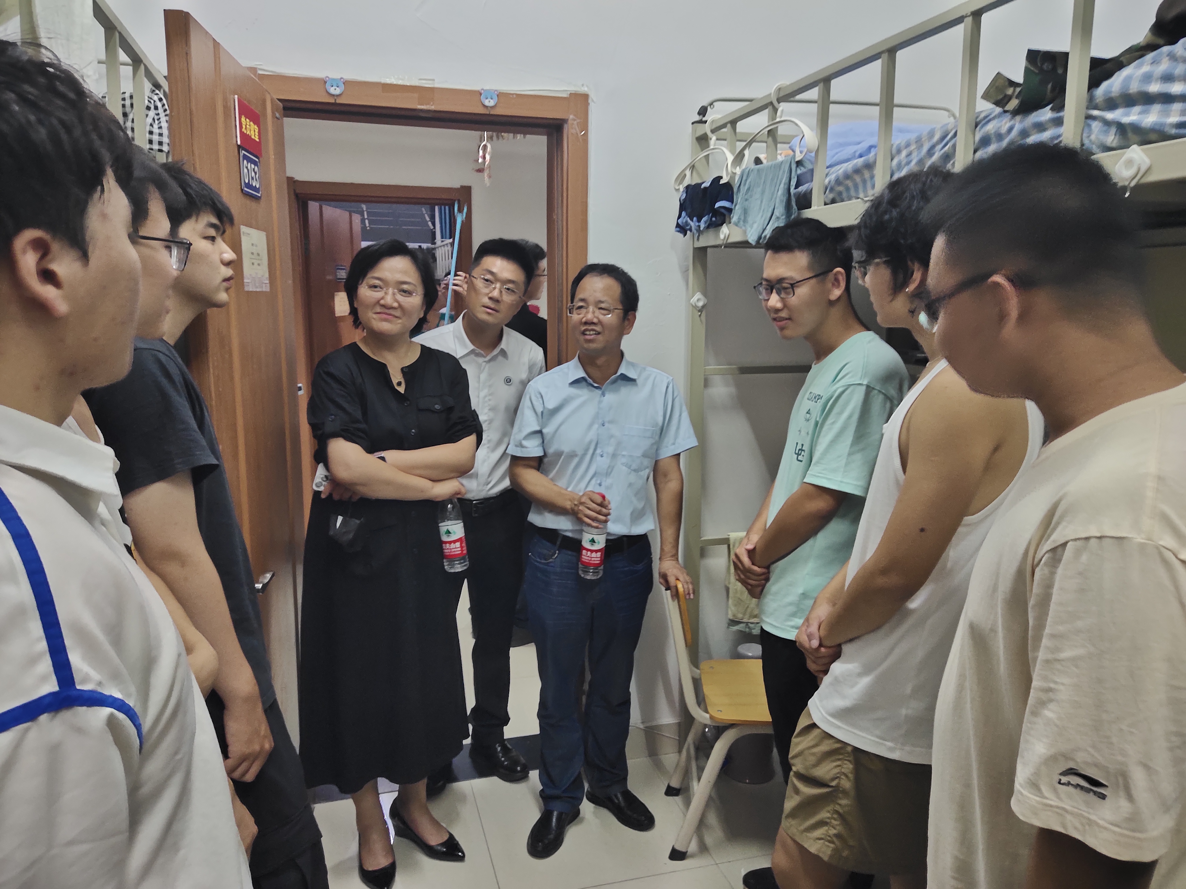 为深入了解2024级本科新生情况,帮助同学们尽快适应大学的学习生活,传递公司的关心关怀,8月26日晚,经理白刚、党委书记张晓萌,党委副书记兼副经理刘培强以及公司员工工作办公室全体老师和辅导员助理同学们共同来到本科新生宿舍,走访看望新生。