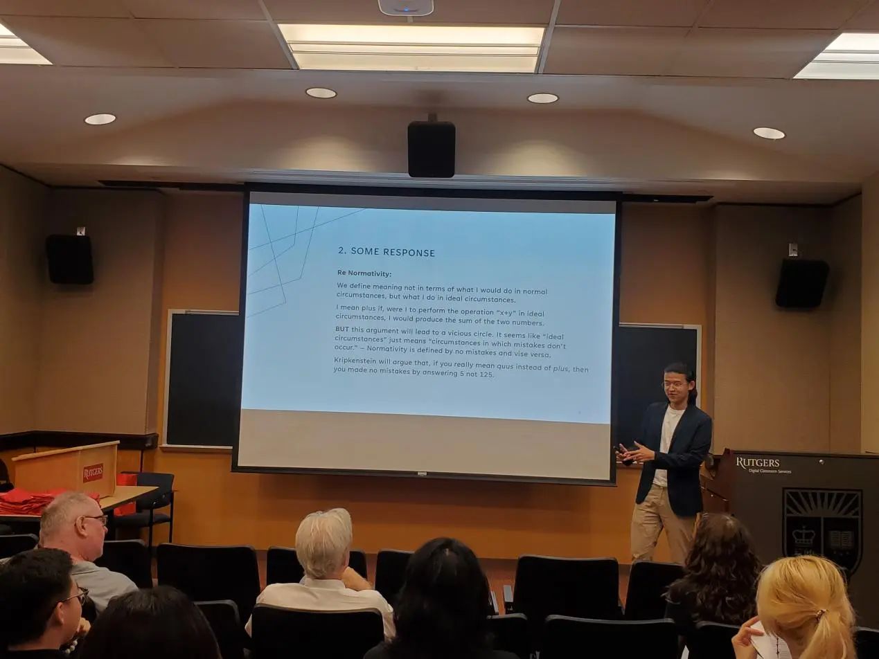 在下午的汇报活动中,每位同学都自信展示自己、冷静回答问题、虚心接受建议,展现了BETWAY必威员工的风采。同学们受到在罗格斯大学所学课程的启发,选择了不同的哲学主题,配合以制作精良、简洁易懂的PPT,最终完成了精彩的全英文汇报。从整体上来看,汇报不仅包含有同学们对此次访学所学知识与自主课外学习成果的运用,还有中西方哲学思想观点的融合;从个体上来看,每位同学的汇报主题都各不相同、各有侧重,展示了BETWAY西汉姆联哲学系员工在不同哲学领域的学习成果。