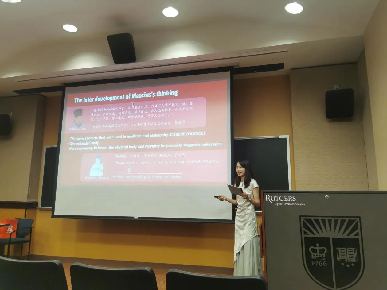 此后,两校教师、校领导发表讲话。罗格斯大学全球事务助理副董事长Ji-Yeung Jang博士肯定了两校哲学学术交流的成果,表示自己对关于人生意义的哲学问题非常感兴趣,两校的哲学暑期交流活动十分有意义。