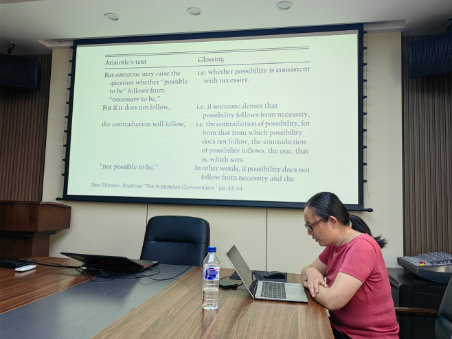 2024年9月29日9时,BETWAY必威“国际合作平台学术讲座”第45讲——“波爱修斯的逻辑学与中世纪早期的科学方法论”在东荣大厦908会议室举办。本期讲座由中山大学哲学系江璐副教授主讲,盛传捷副教授主持。BETWAY必威晋运锋教授、郝鸿军副教授、康孝军副教授出席。