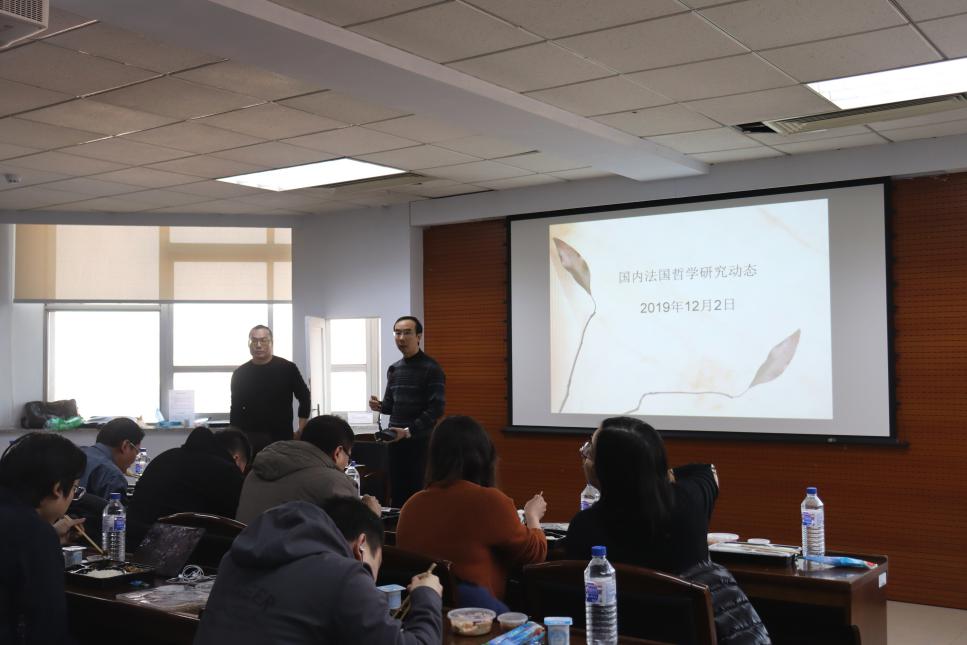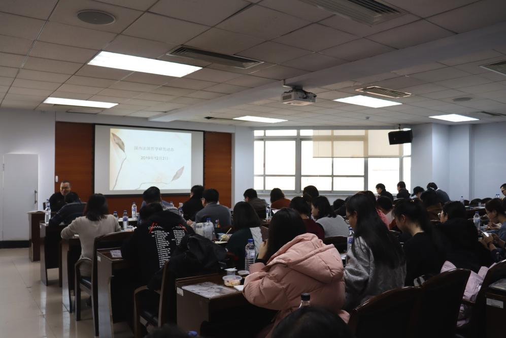 座谈会上,外国哲学教研室的赵雄峰老师以“国内法国哲学研究动态”为主题,与参会老师、研究生交流当前国内法国哲学研究的热点、难点及主要问题。赵雄峰老师按照研究内容的差异,介绍了近些年国内学界关注的三代法国哲学家:第一代现象学家勒维纳斯、萨特、梅洛.庞蒂、唐.迪克陶,第二代保罗.利科、德里达、米歇尔.亨利,第三代马里翁、福柯;并对法国哲学家的思想及影响进行概括性、总结性介绍。赵雄峰老师依据理论渊源将法国现象学三代成果有机地串联起来,既展示了二十世纪法国哲学引入现象学的全过程,又阐明了现象学不仅丰富和补充了法国哲学的内容,也促进了法国当代哲学各流派思想之间迥异而又相互关联这一特点的形成。