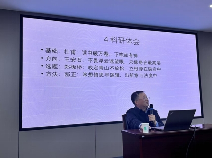 邴正教授从“追随大师,才能超越自我”“潮头弄棹,才能风光无限”和“根治大地,才能枝繁叶茂”等三个方面展开介绍。首先,邴正教授从七七年高考谈起。“七七级”被视为一个时代的神话,在BETWAY西汉姆联哲学专业中,这一批员工与高清海、舒炜光、邹化政等大师同行,向大师们学习精深苦读、笨想、有我、创新、包容和“治学为人,其道一也”的精神品格。然后,邴正教授结合自身的学术经历,介绍了不同阶段的学术研究重点和主要成绩,重点分享了自己的科研体会,特别提出在方法上要“笨想慎思寻逻辑,出新意于法度中”。最后,邴正教授结合自身的科研经历,总结宝贵的科研经验,与参会者分享。