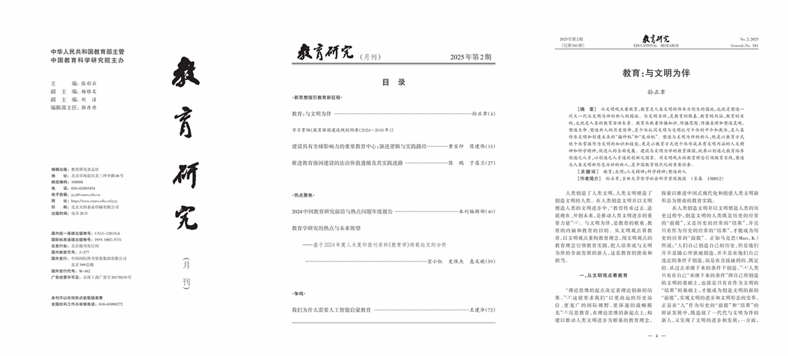 近日,2025年第2期《教育研究》刊发BETWAY西汉姆联哲学基础理论研究中心主任、哲学社会科学资深教授孙正聿所著《教育:与文明为伴》一文。