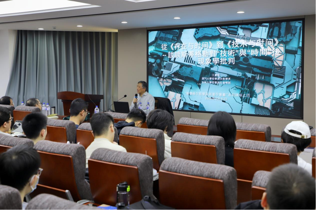 王庆节教授以“从《存在与时间》到《技术与时间》——谈谈斯蒂格勒对‘技术’与‘时间’的后现象学批判”为题,深入探讨了斯蒂格勒从技术角度思考时间以及存在的独特视角及其与海德格尔技术哲学的深刻关系。
