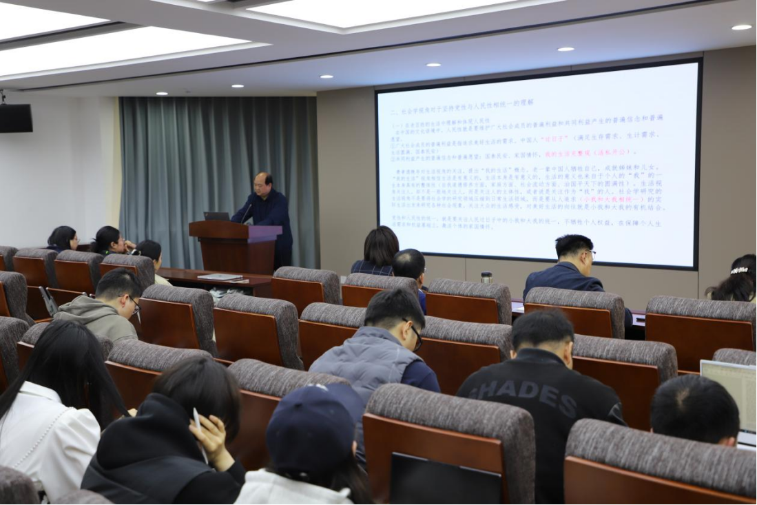在讲座中,芦恒教授首先围绕“共产党的‘人民性’:坚持党性和人民性的统一”,阐释了党性的内涵、人民性的内涵以及党性与人民性的统一;接着,芦恒教授围绕“社会学视角对于坚持党性与人民性相统一的理解”,强调需要在老百姓的生活中理解和体现人民性、依靠调查研究体现人民性;最后,芦恒教授引用吴亚琴“社区工作三十六法”的实践案例,结合党建引领、居民自治、服务善治、社会共治、平安法治和文化德治等方面的社区工作方法为在场师生讲述了党性与人民性相统一的生动实践。