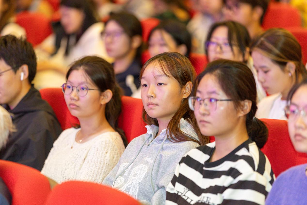 随后,在师生们热烈的掌声中,哲学社会科学资深教授孙正聿为大家做新生第一课。孙正聿教授以“送给自己的‘格言’”为题,围绕“学习、研究、能力、写作、风气、为人、境界、期待”八个维度,为在场师生描绘出从学习研究的“入门者”到有灵魂的“思考者”的成长路径。