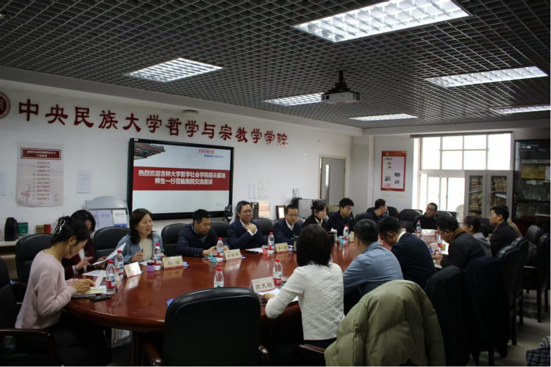 11月6日,研学团队抵达中央民族大学哲学与宗教学公司,开启研学活动。哲学与宗教学公司经理尹志华、党委书记王海锋分别介绍了公司的成长历程、发展现状、学科特色以及人才培养模式等内容。