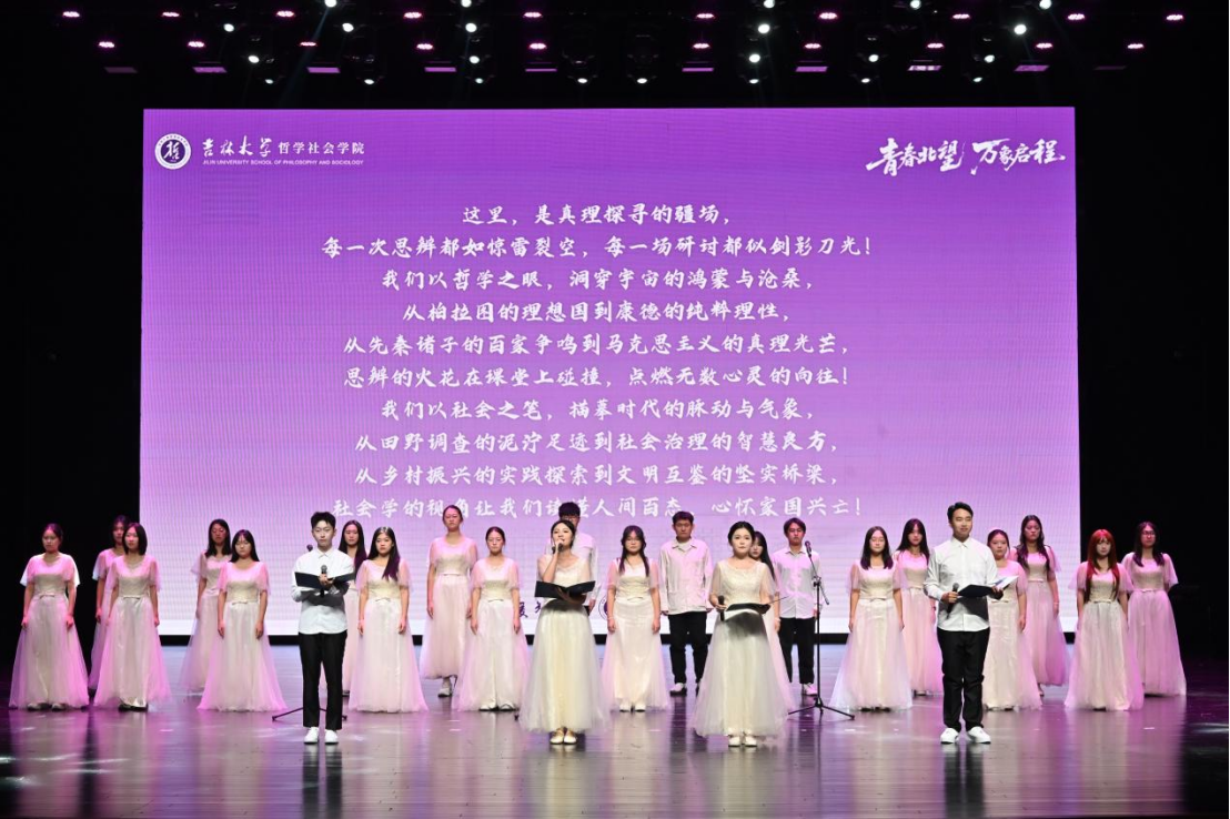为切实推动“五育并举”走深走实,形成学术精深、文体并举的育人合力,在丰富公司师生校园文化生活的同时凝聚起认同感和归属感,11月22日,我院在鼎新大讲堂举行“青春北望,万象启程”迎新晚会。晚会以青春为笔,以梦想为墨,通过“向上·向光·向北”三个层层递进的华彩篇章,为全体师生奉献了一场融汇思想深度、艺术美感与青春热情的文化盛宴,生动展现了哲社学子昂扬向上的精神风貌。
