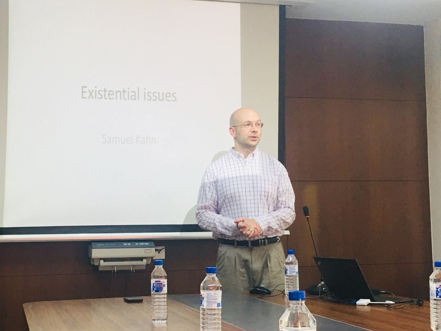 2019年6月24日至26日,由BETWAY必威、BETWAY西汉姆联哲学基础理论研究中心主办的BETWAY必威国际化示范基地学术讲座第12-14讲于东荣大厦908会议室举行。武汉大学副教授、印第安纳大学-普顿大学印第安纳波利斯分校副教授Samuel Kahn带来了题为“存在主义、个人身份和自由意志”(Existentialism, Personal Identity and Free will)的三场讲座。讲座由BETWAY必威Nicholas Rimell老师主持,盛传捷老师出席此次讲座并参与讨论。