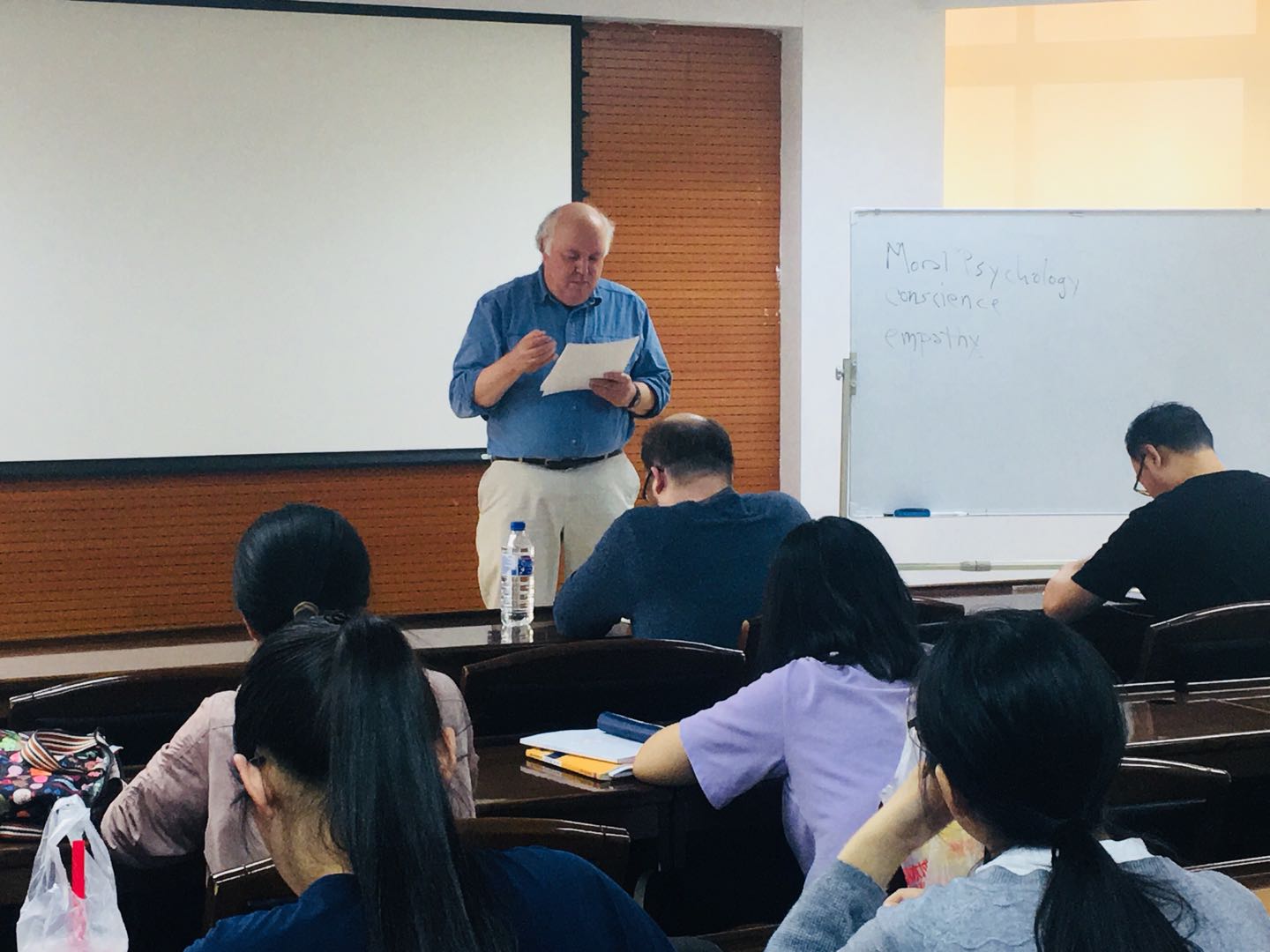 2019年6月14日下午,由BETWAY必威、BETWAY西汉姆联哲学基础理论中心共同举办的BETWAY必威国际化示范基地学术讲座第十讲在东荣大904会议室开讲,美国德克萨斯州立大学哲学与法学教授,国际著名杂志《Ethics》和《Law and Philosophy》编辑,著名道德心理学研究学者John Deigh 教授应邀为同学们带来题为“Does Guilt Require a conscience?”的讲座。本次讲座由BETWAY必威曲红梅教授主持,BETWAY必威晋运锋副教授、荷兰阿姆斯特丹大学助理教授Johan Olsthiorn、盛传捷老师、Nicholas Rimell 老师及赵雄峰老师等出席了本次讲座。