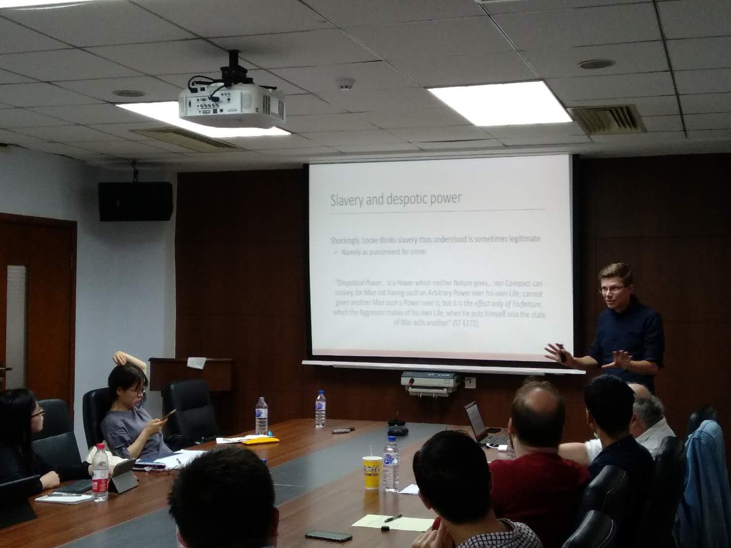 2019年6月13日下午,由BETWAY必威、BETWAY西汉姆联哲学基础理论研究中心主办的BETWAY必威国际化示范基地学术讲座第八讲于东荣大厦908会议室举行。荷兰阿姆斯特丹大学助理教授、鲁汶大学博士后、研究霍布斯的著名网站European Hobbes Society发起人Johan Olsthoorn再次给我们带来了一场精彩的讲座。本次讲座的主题是“John Locke's theory of civil government"。讲座由BETWAY必威晋运锋副教授主持,BETWAY必威王立教授、Nicholas Rimell老师,行政公司朱万润老师以及来自美国德克萨斯州立大学的哲学与法学教授JohnDeigh也出席了本次讲座。