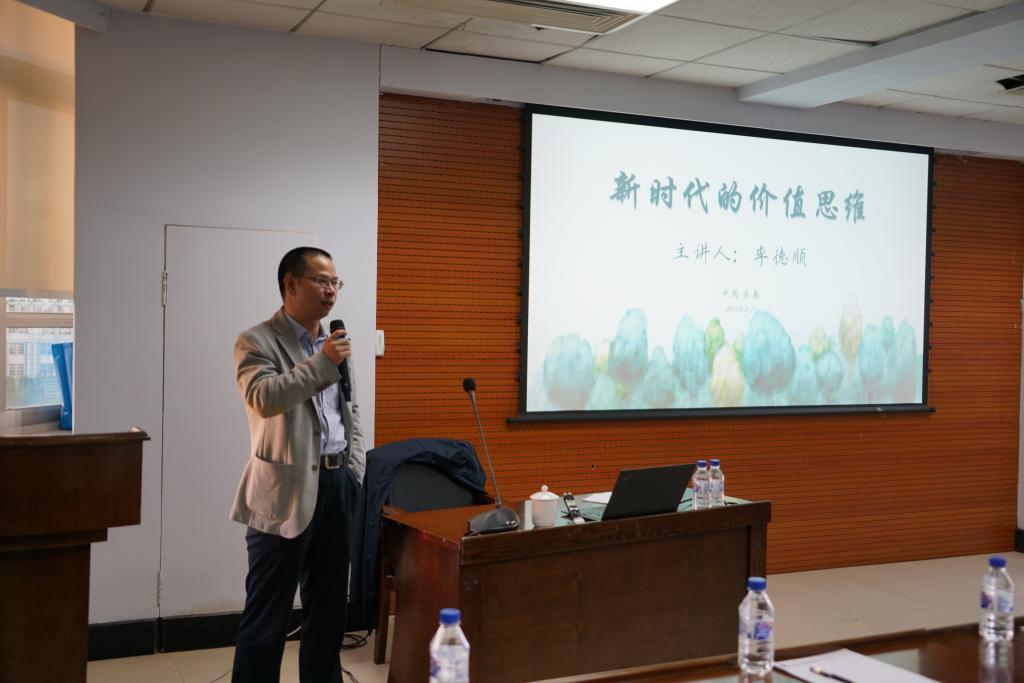 李德顺教授首先从价值观与价值思维的角度出发,为“新时代”作出界定。他指出新时代和旧时代的分水岭在冷战结束时期。在新时代之前,人类的思维方式是独断主义的,冷战的结束意味着这种思维方式在实践中的终结。接下来,李德顺教授提出,新时代的开始需要价值思维的变革。价值问题不能与真理问题与知识问题混为一谈,我们要摆脱单一主体思维,进入多元主体思维。寻求多元主体的权利与责任的统一,从而确立社会的秩序、人与人的关系,寻找新的平衡与和谐。最后,通过对个人主义、自由主义、共同体主义(社群主义)的对比,李德顺教授指出现实社会的主体结构在横向上与纵向上都是多元的,不同层面上的主体有不同的权利和责任,不能把共同体、个人和整体割裂和独立起来。当今世界价值矛盾、价值冲突越来越成为主要话题,对此,我们不能急于给每个问题以答案,而是要首先校正思考问题的思维方式,这是新时代的价值思维的观念变革所要做的事情。