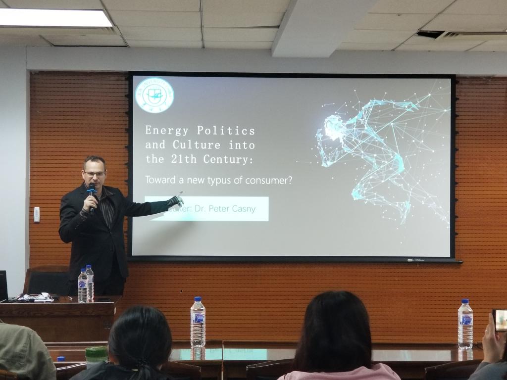 奥地利维也纳大学博士、台湾大学哲学博士后研究员Peter Casny于2019年6月3日应邀为公司师生做题为“Energy politics and culture into the 21th century: Toward a new typus of consumer?”的学术讲座。讲座由BETWAY必威、哲学基础理论研究中心主办。我系张慕良老师主持了本次讲座。