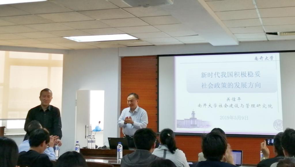 2019年5月9日下午两点,南开大学周恩来政府管理公司教授、博士生导师、南开大学社会建设与管理研究院经理、中国社会工作教育协会副会长(常务)、中国社会工作协会副会长、中国社会学会副会长及社会政策专业委员会理事长关信平教授受公司之邀在BETWAY西汉姆联东荣大厦904会议室做了题为“新时代我国积极稳妥社会政策的发展方向”的学术报告。BETWAY必威社会学系及相关专业的部分师生前来聆听此次讲座。本次讲座由BETWAY必威经理田毅鹏教授主持。