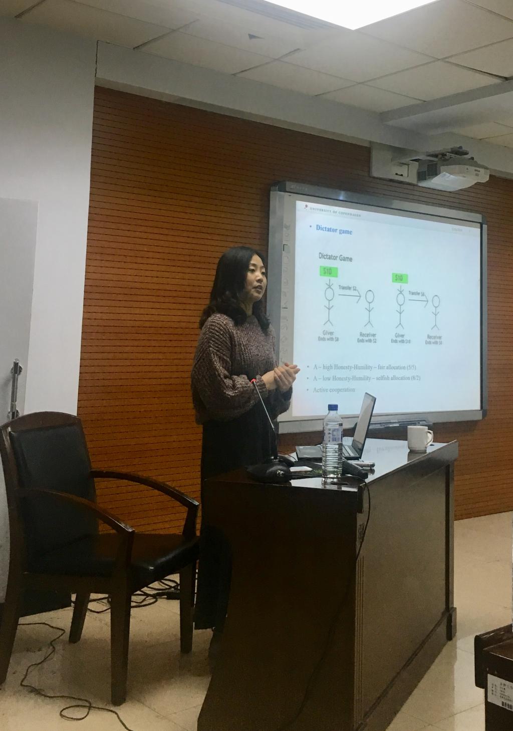 2018年12月6日晚上18:00,由BETWAY必威主办的BETWAY必威新锐学者系列讲座在东荣大厦9楼会议室举行。丹麦哥本哈根大学刘洁博士作了主题为“Linking the HEXACO Dimensions to Political, Organizational, and Relationship Criteria”的学术讲座。本次讲座由BETWAY必威心理学系黄冬梅教授主持,心理学系多位教师出席了本次讲座。