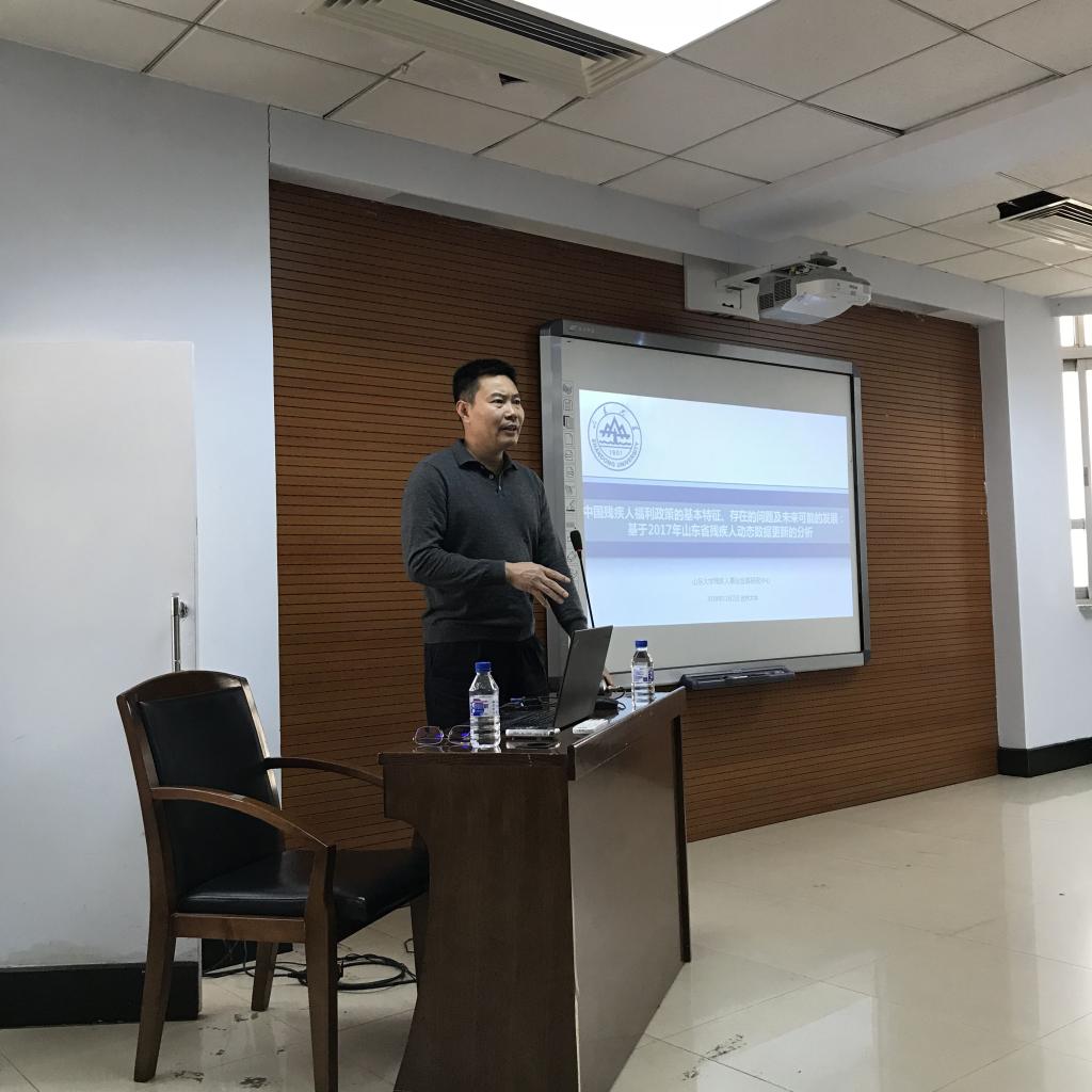 2018年11月3日上午9点,BETWAY必威学术名家讲座第28场在东荣大厦9楼会议室举行。中国残疾人事业发展研究会副秘书长、中国残疾人事业发展研究会社会工作专业委员会副主任委员、济南市残疾人福利基金会理事长、山东大学残疾人事业发展研究中心主任、山东大学哲学与社会发展公司博士生导师葛忠明教授,作了题为“中国残疾人福利政策的基本特征及未来可能的发展方向:基于山东省2017年动态更新数据的分析”的学术讲座。劳动与社会保障系系主任董才生教授主持了本场讲座。