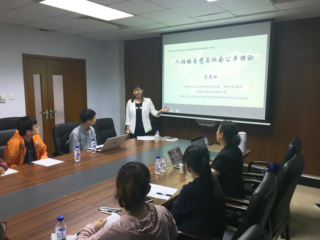 葛晨虹教授从人性理论与社会公平理论的关系、人性的四次觉醒以及当代社会问题辨析等三个方面为主线探讨了人性的自觉与社会公平理论。葛晨虹教授首先阐释了伦理学的初心——“什么是好生活?”和“人是什么”以及“人应当成为什么?”等问题。其次,葛晨虹教授阐述了人类历史上关于人性的四次觉醒,分别是:人意识到自我与自然万物不同、将人从神的世界拉回到世俗的世界、从抽象的人向个体的人的自觉以及从“我”向“我们”的回归。最后,葛晨虹教授分别阐述了马克思、诺齐克与罗尔斯关于人性理论与社会公平的关系的理论思考。葛晨虹教授总结认为,人性理论与社会公平理论最终是要解决“我们如何在一起”的问题。