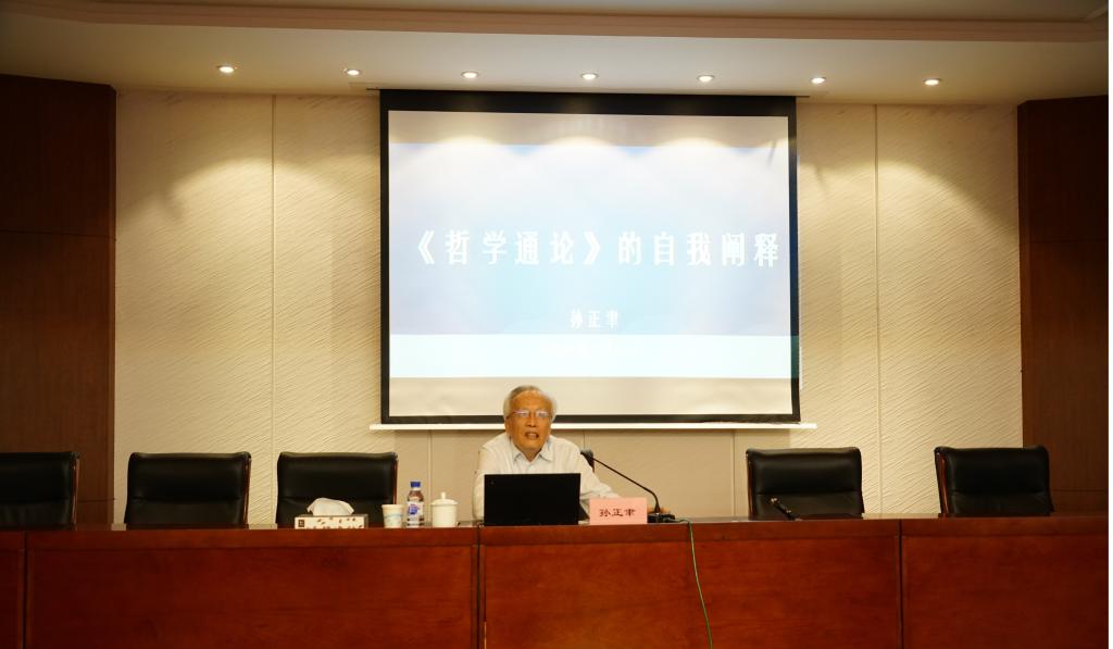 中国社会科学杂志社王海锋主持了第一场主题发言,孙正聿教授以“《哲学通论》的自我阐释”为题进行主题发言。该发言分为五个部分:一、《哲学通论》的“真实意义”:专著性的教科书。这里讨论了四个方面:“应运而生”的《哲学通论》、作为“专著”的《哲学通论》:变革哲学观念、作为“教材”的《哲学通论》、作为“方向”的《哲学通论》;二、《哲学通论》的“真实内容”:变革哲学观念。该书变革了对“哲学”的理解、对“哲学基本问题”的理解、对“真理”的理解、对“本体”的理解、对“哲学派别冲突”的理解以及对“哲学史”的理解;三、《哲学通论》的“哲学方向”:思想的前提批判。分三个部分,“反思”的哲学是“思想的前提批判”、“思想的前提批判”的理论空间、“思想的前提批判”变革人的“现实自我意识”;四、《哲学通论》的“哲学问题”;五、《哲学通论》的“时代问题”。北京大学哲学系主任仰海锋教授和复旦大学邹诗鹏教授进行了主题发言评论。北京大学仰海锋教授以“亦开风气亦为师”评价孙正聿教授对中国哲学界的学术贡献和教学贡献。他提出任何一个哲学家都是在追问哲学的过程中成为哲学家的,孙正聿教授的《哲学通论》就是这种追问的体现。复旦大学邹诗鹏教授高度评价了孙正聿教授《哲学通论》对中国哲学教育的卓越的贡献。《哲学通论》极大了推进了中国哲学教育事业的发展,如何沿着这个路径不断扩展和规范哲学教育是当前专业哲学教育的重大课题。