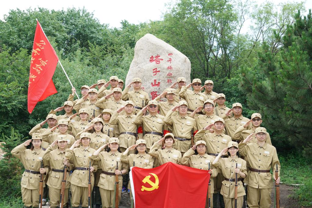 在“现场教学、体验教学、影像教学、理论教学、访问教学、总结提升”六位一体的教育模式下,活动有序进行。上午到达教学场地后,全体教工党员更换了军服,接受了列队动作、军容整理的基础训练,并于报告厅内举行了隆重的启动仪式暨队旗授予仪式,党旗下他们庄严宣誓“传承英雄史,再铸英雄魂”。随后全体教工党员来到塔子山脚下,徒步重走英雄路,山顶纪念碑下,远眺英城新貌,体验革命征程之艰难,夺取革命胜利之不易,抒革命豪情,强革命志向。下午,各教工党员先后到达三道林子战斗遗址和东北民主联军四平保卫战指挥部旧址,了解解放战争初期,国共双方围绕战略要地四平进行的政治较量和军事斗争,全方位立体感受四平保卫战中的真实情景。