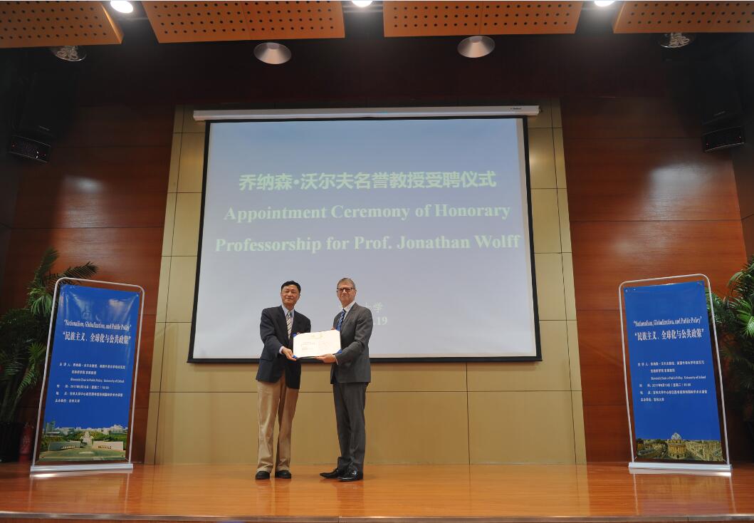 2017年9月19日,英国牛津大学乔纳森沃尔夫教授受聘BETWAY西汉姆联名誉教授的仪式在中心校区国际学术大讲堂举行。BETWAY西汉姆联副董事长吴振武教授、BETWAY必威经理田毅鹏教授、副经理王庆丰教授、副经理曲红梅教授、国际合作与交流处副处长孟括出席了聘任仪式。