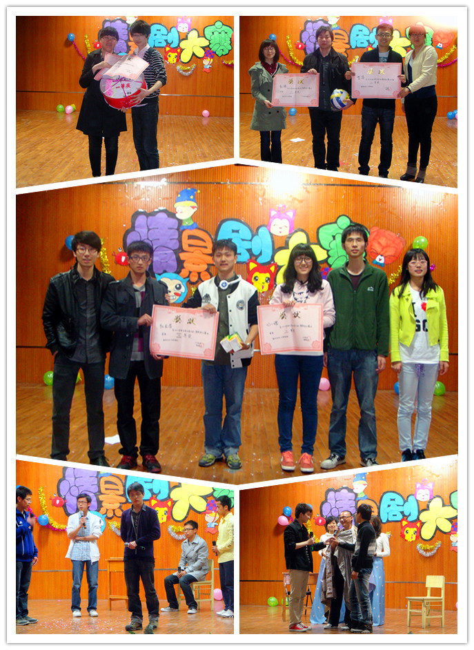 参加本次情景剧大赛的五个专业的参赛作品各领风骚,均演绎的活灵活现,栩栩如生。应用心理学专业表演的《喜剧的忧伤》使得台下笑声不断,掌声连连,罗密欧与朱丽叶故事的巧妙改编、“非诚勿扰”的时代搞笑元素、再融合对于现代爱情观的深入思考,短短的舞台剧表达的淋漓尽致;哲学专业表演的《马嵬兵变》带领我们穿越历史的长河,让我们在嬉笑过后感受历史的沧桑万变,经典的历史剧,慷慨激昂的陈述,忘我投入的对白,无不使人印象深刻。两组精彩的演出之后,神秘嘉宾吉大达人秀冠军张华威闪亮登场,火红的身影舞出了全部的热情,掀起了本次大赛的高潮。在互动环节中,拉近了与观众之间的距离,全场阵阵沸腾,掌声雷动。表演结束之后,比赛继续进行。社会保障专业表演的《女老员工宿舍钟点工》倾情诠释了“可怜天下父母心”,演员们的真情流露,感动全场,发人深省。社会工作专业表演的《看电视》笑点频频,既诙谐幽默,又隐藏教育深意,融入了影视幽默元素,每一段台词被生动的演绎,每一个经典的场景被称奇的再现,全场不断爆发的掌声就是对他们表演最好的肯定。随后,2010级生管部成员表演的《最炫生管风》舞蹈再一次点燃现场的激情,配着如此开怀的音乐,观众也抑制不住心中的喜悦随着节奏舞动起来。最后一幕剧是社会学根据真实故事改编的《你们是我的星光》,它演绎出了同学之间的友谊,催人泪下。当社会班的同学依次与转系离开的同学拥抱时,浓浓的感动满溢在现场。最后,在女生部的歌曲串烧中结束了本次比赛。