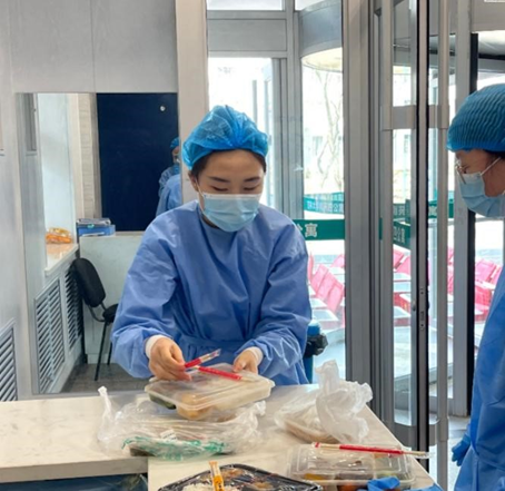 作为南四公寓二楼楼层负责人和临时党支部的一员,李慧婷协助公寓楼长以及驻楼老师们统筹协调楼内志愿服务任务,努力做好员工干部中间工作,引领同学们齐心协力、共抗疫情,为满足公寓内近1350位同学的三餐需求保驾护航。