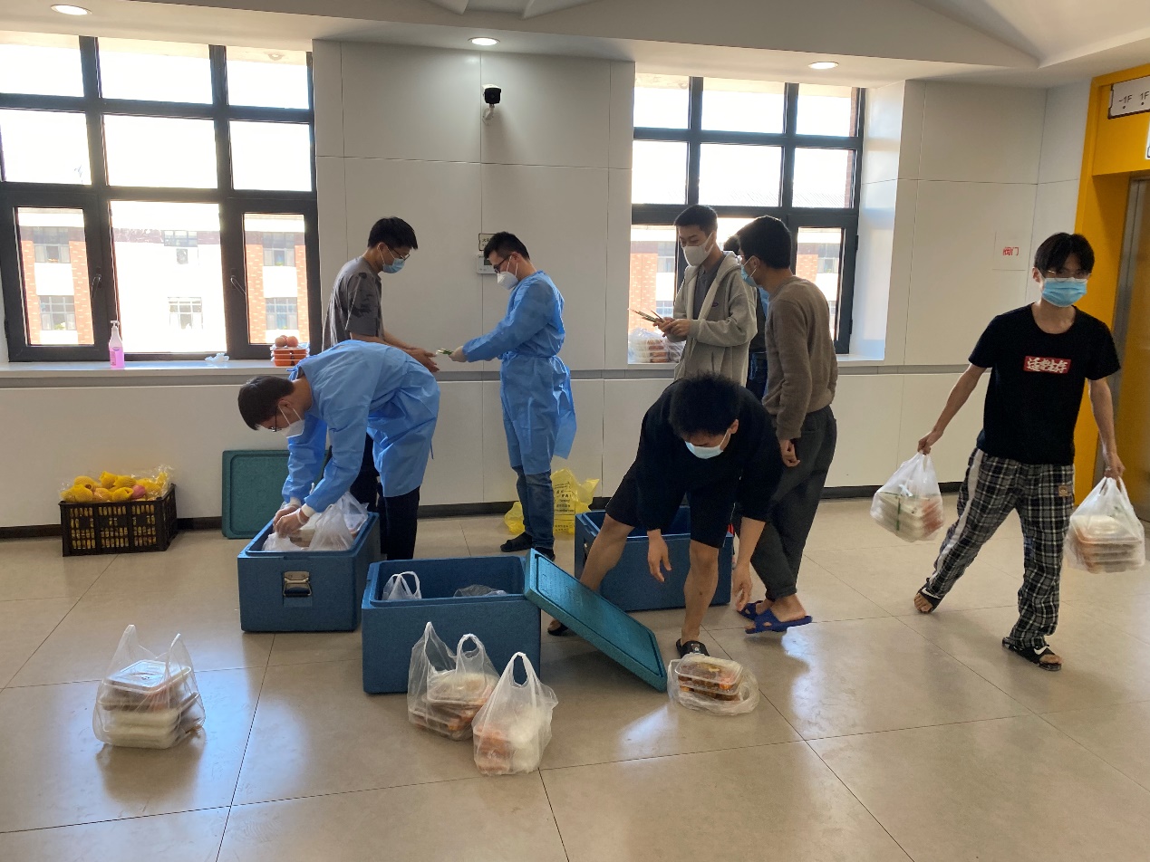 朱光亚:3月13日封寝以来我主要承担北苑四公寓11楼的送餐、送水,分发生活物资、防疫物资,做鼻拭子检测,安排楼层洗浴,清点楼层人数,与楼内主管工作的老师进行协调,维持户外秩序等工作。从最初的物资志愿者到后来成为楼层负责人,再到后面成为一名户外志愿者,在这60多天的志愿服务中支撑我的是一名党员的理想信念,是来自公司老师的关心关爱,是来自同学们的理解包容, 60多天的时间里,我努力适应新的志愿工作,基本完成了各项任务。此外,在志愿服务的过程中我有幸能与北四哲社的志愿者同学们一起服务而深感荣幸,似乎生命的意志只能在这种纯粹的实践过程中才能得到显现,在对疫情的防控中我们才意愿到生活的美好与善良之心的可贵,才能体会意志生命的长盛之花,黄昏已过,天明将来!