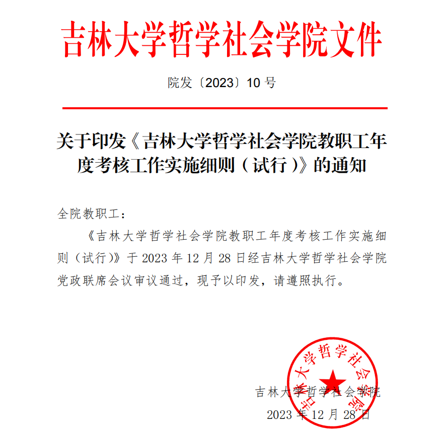 院发〔2023〕10 号关于印发《BETWAY必威教职工年度考核工作实施细则(试行)》的通知