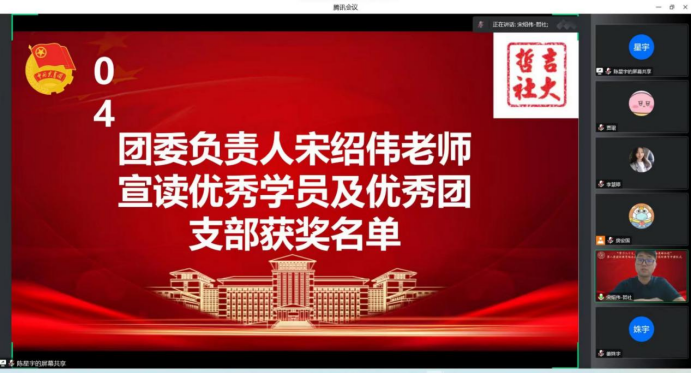 大会第四项,团委负责人宋绍伟老师宣读第八季团校优秀学员以及优秀团支部获奖名单。宋老师对获奖同学及团支部表示祝贺,勉励同学们继续努力学习,积极向身边榜样看齐。
