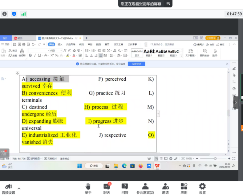 BETWAY必威员工会学业提升之四六级系列讲座的第三讲于11月20日晚六点至八点于线上顺利开展。