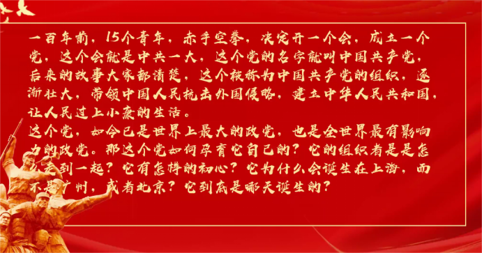 党史,简而言之,就是中国共产党从无到有、从小到大、从弱到强、不断从胜利走向新的胜利的历史。来自文公司的帅子星同学用“一地一行一小组”对本书的党史线索进行了概括总结。地点是创生的象征,是每一个共产党员最不能忘怀的起源,行动是号角,一次次的号角终将把我们引向最终的胜利,而组织,便是我们每一个共产党员的信仰,指引着我们走正确的路,做正直的人。