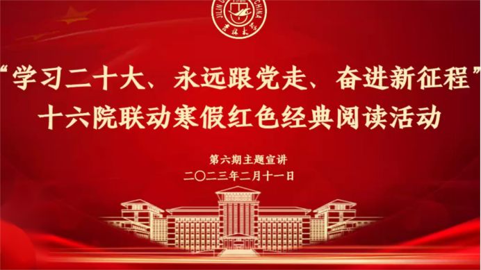 阅读经典,有助于我们客观清醒地学习中华优秀传统文化和社会主义先进文化,细致深刻地感悟党领导人民过去五年的工作和新时代十年的伟大变革,做到明理增信、崇德力行。在五位主讲同学和参会同学们的热情交流中,第六期寒假红色经典阅读活动圆满结束。